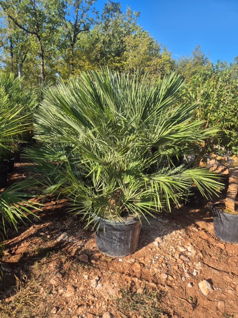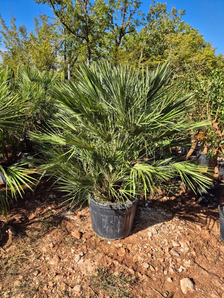 Die „Palma Zumara“ (Zwergpalme) ist besonders robust, windfest und pflegeleicht. Sie bringt sofort Urlaubsfeeling in dein Eigentum auf Krk: